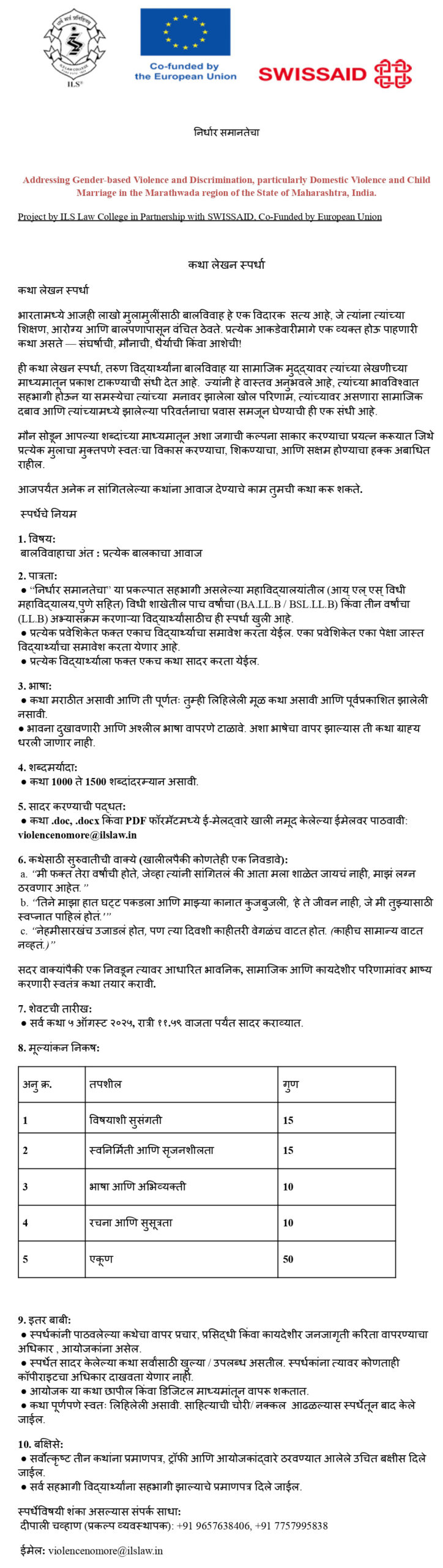 कथालेखन स्पर्धा नियम